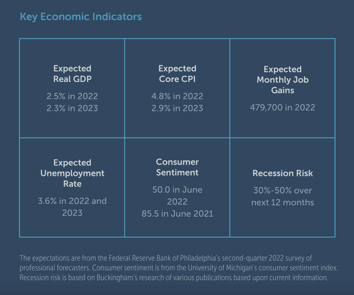We believe the two biggest risks to the economy are the war in Ukraine dragging on and inflation running hotter than markets expect. In addition, the effects of reduced fiscal stimulus, significantly tighter monetary policy, and the stronger U.S. dollar are likely to result in slower economic growth. In our opinion, the chance of recession in the next 12 months has increased to 30%-50%.
