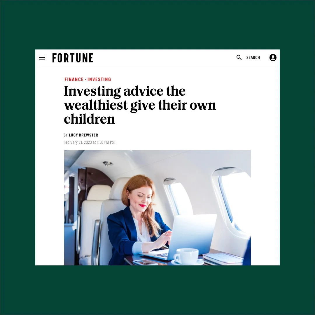 Lucy Brewster included Georgia in a recent Fortune article (heads up: paywall!) on investing advice from wealthy families. She reminds us to take the emotion out of investing and put the financial noise within context: “Historical perspective is one of the biggest differences that I see between younger investors and investors who have a fair amount of experience”.