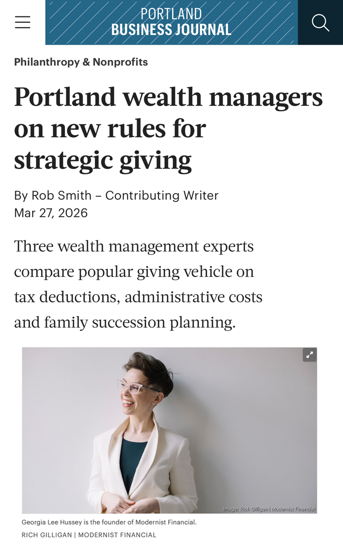 Portland Business Journal: Portland wealth managers on new rules for strategic giving